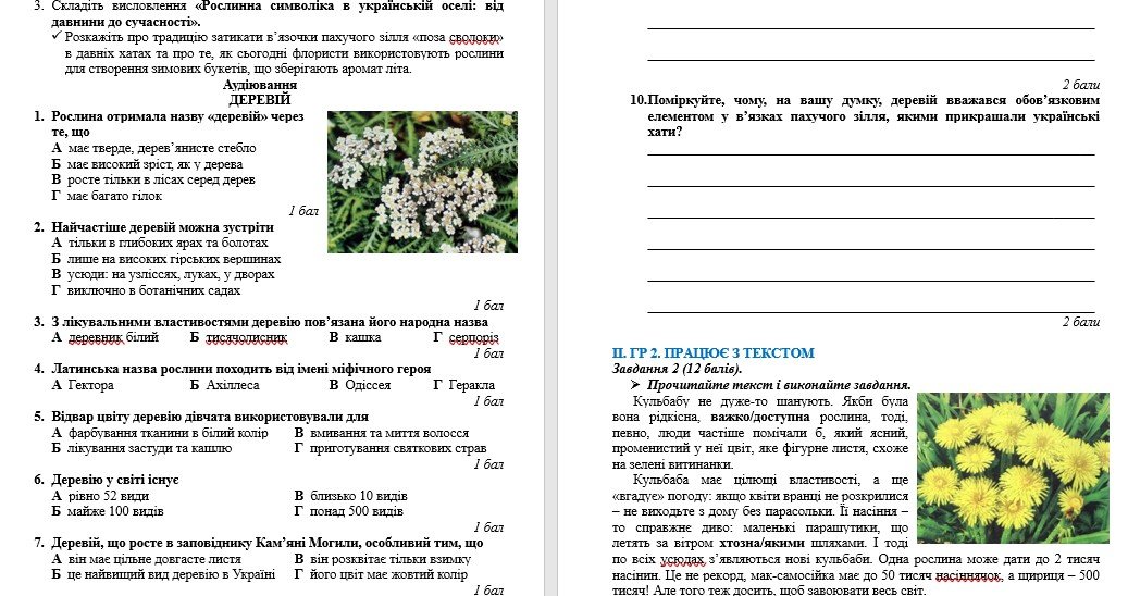У комплекті є відповіді, критерії оцінювання, самооцінювання.