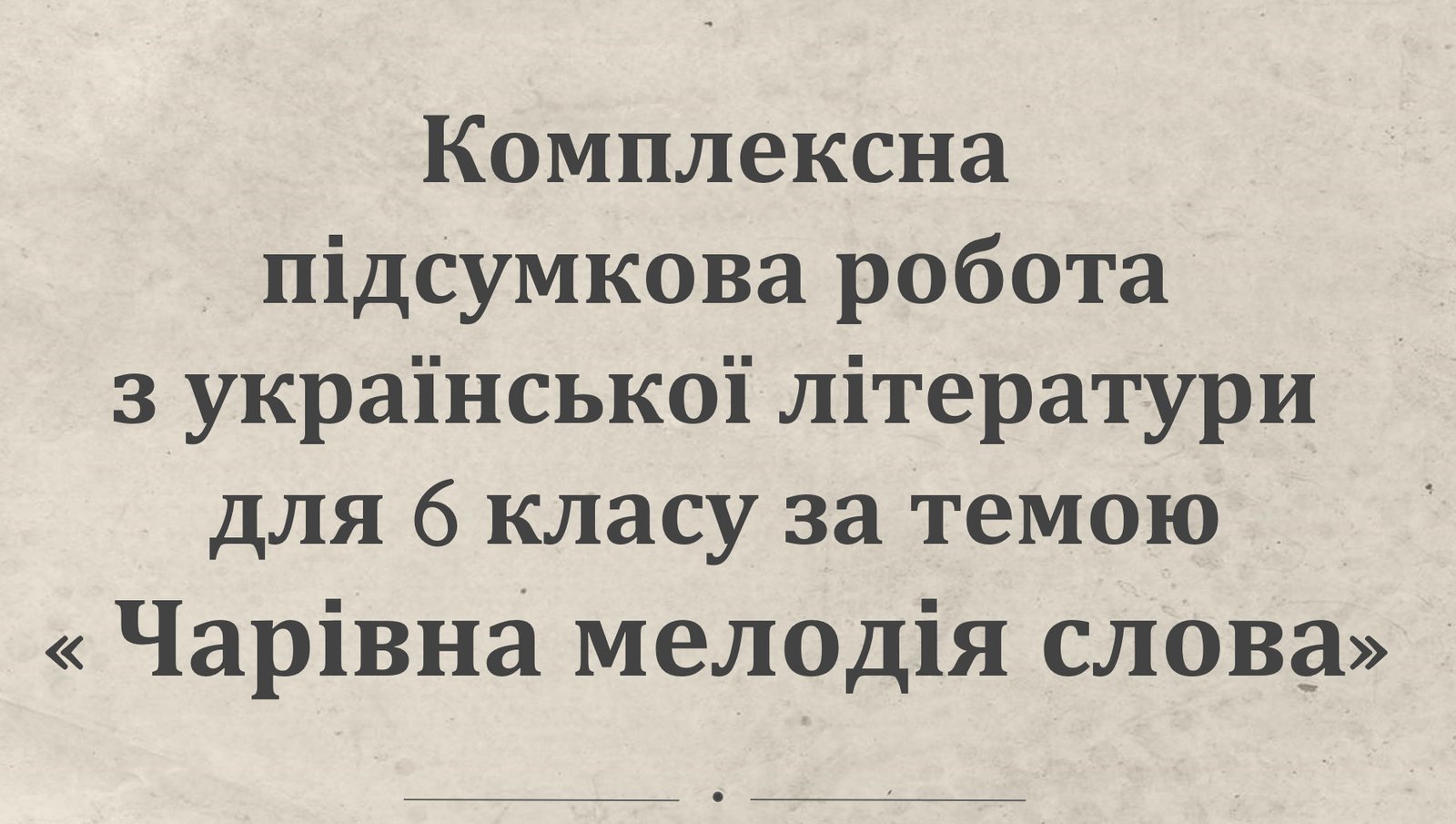 Комплексна підсумкова робота. 6 клас. Українська література. “Чарівна мелодія слова” ...