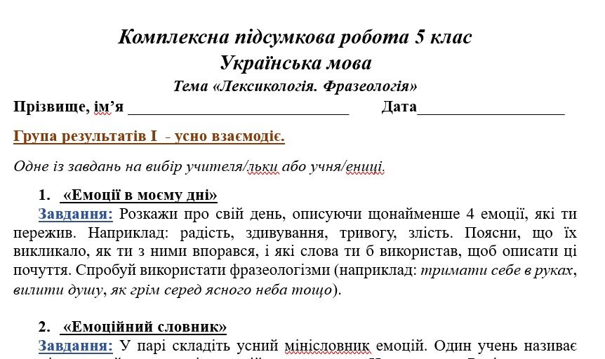 Комплексна ПР. 5 клас. Українська мова. “Лексикологія. Фразеологія” За чотирма ГР (МН...