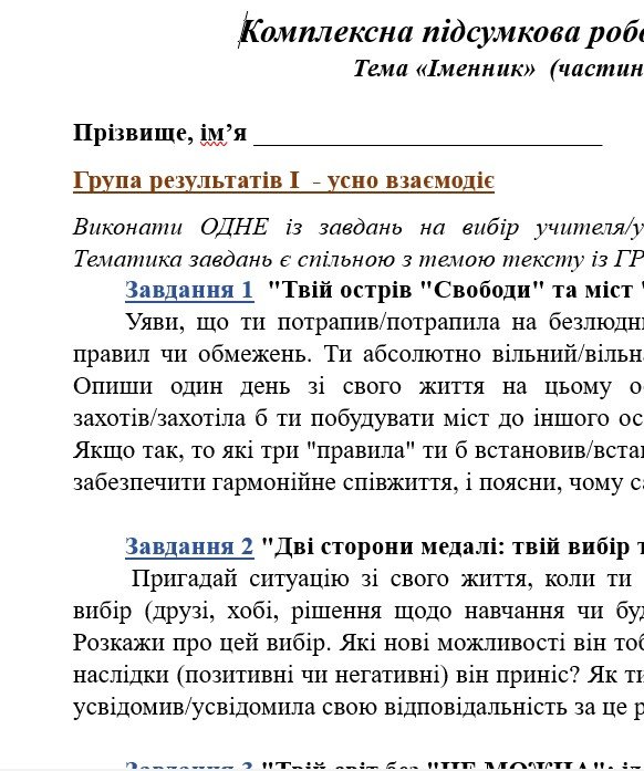 ГР 1 – ТРИ цікавих креативних завдань на вибір учителя/ки або учня/ениці; для усної взаємодії;