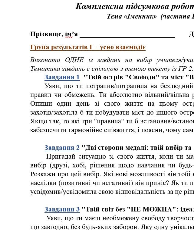 ГР 1 – ТРИ цікавих креативних завдань на вибір учителя/ки або учня/ениці; для усної взаємодії;