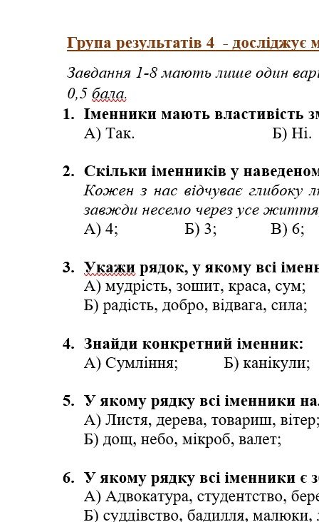 Комплексна підсумкова робота з української мови для 6 кл. Чотири групи результатів.Тема “Іменник” (ч.1.) МНП Заболотного. Теми, що охоплює КПР: іменники конкретні й абстрактні, назви істот і неістот, велика літера й лапки у власних назвах, незмінювані іменники, рід, число, відмінки іменників, поділ іменників на відміни й групи.