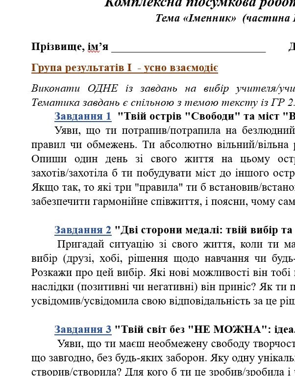 ГР 1 – ТРИ цікавих креативних завдань на вибір учителя/ки або учня/ениці для усної взаємодії – 2 варіанти;