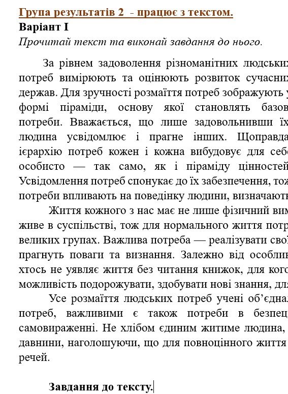 ГР 2 – текст та завдання до нього ( визначення основної думки тексту, тестові завдання на розуміння тексту, завдання з мовних тем) – 2 варіанти;