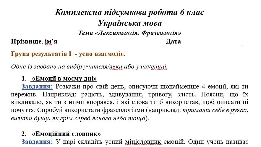 Комплексна ПР. 6 клас. Українська мова “Лексикологія. Фразеологія” ЗА ЧОТИРМА ГР!!!! ...