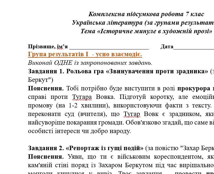 Комплексна ПР. 7 клас. Українська література. “Історичне минуле в художній прозі” МНП Заболотного; за ЧОТИРМА ГР!!!