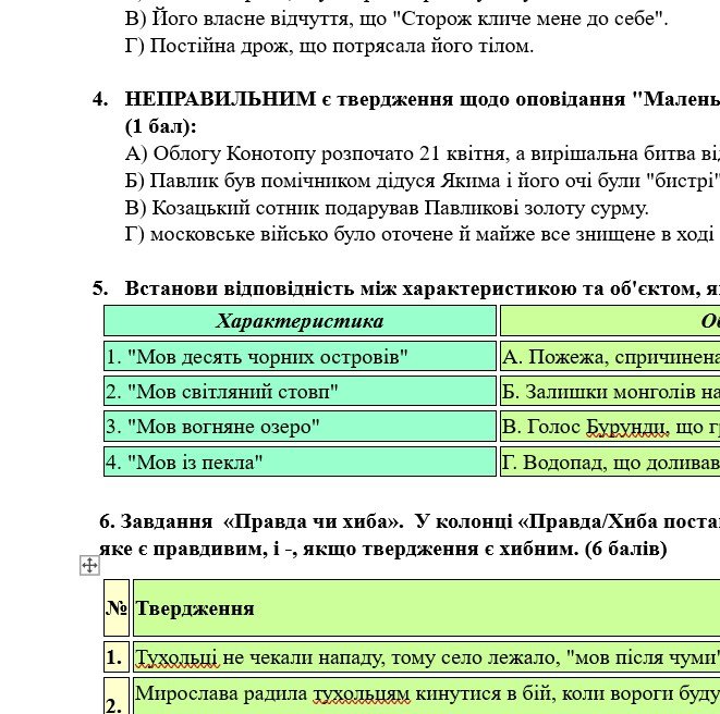 - ГР 1 – три завдання на вибір учителя/ьки або учня/у/ениці (пов’язані з тематикою прочитаних творів);