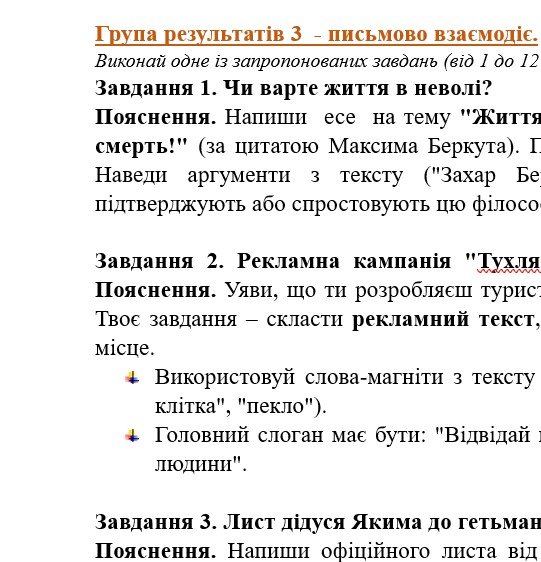 - ГР 3 – три завдання на вибір учня/учениці (або вчителя/ки) (написання цікавих і креативних творчих робіт);