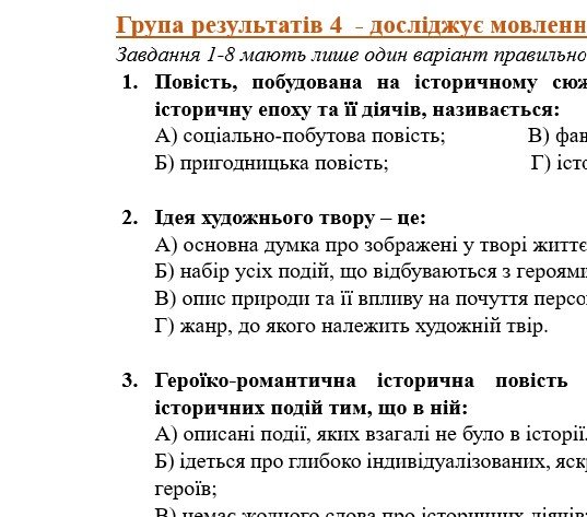- ГР 4 – тестові завдання з вивченої теми, завдання на встановлення відповідностей, три завдання на вибір для відкритої відповіді.
