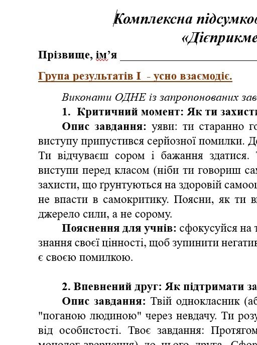 - ГР 1 – три завдання на вибір учителя/ьки або учня/ениці для усної індивідуальної взаємодії;