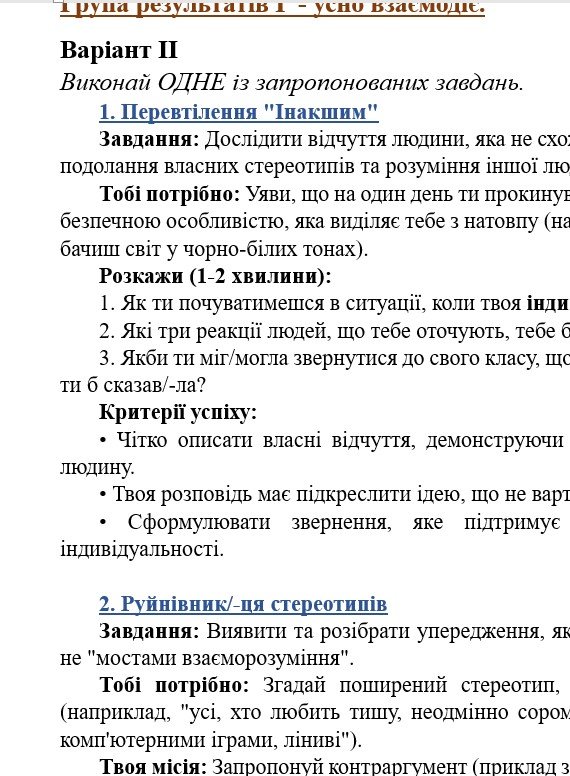- ГР 1 – три завдання на вибір учителя/ьки або учня/ениці для усної індивідуальної взаємодії – 2 варіанти;