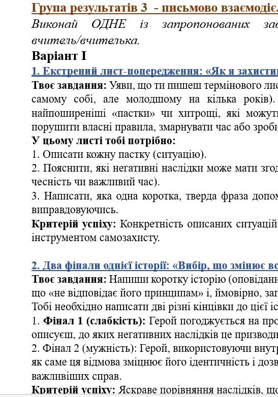 - ГР 3 – три завдання на вибір учителя/ьки або учня/ениці (написання цікавих та креативних творчих робіт) – 2 варіанти;