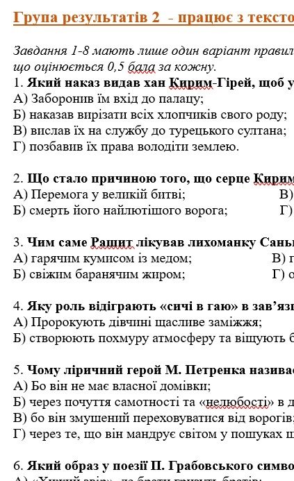 Комплексна підсумкова робота з української літератури для 8 класу НУШ “Українці та кримські татари. Із поезії ХІХ століття” ГР 1, ГР 2, ГР 3, ГР 4. МНП Яценко, підручник Калинич