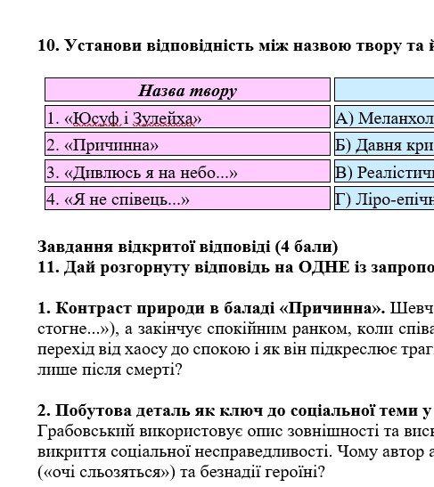 - ГР 4 – тестові завдання, завдання на встановлення відповідностей, завдання з відкритою відповіддю (ТРИ на вибір).