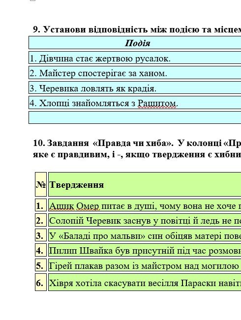 - ГР 2 – тестові завдання, завдання на встановлення відповідності, завдання “Правда чи хиба”;