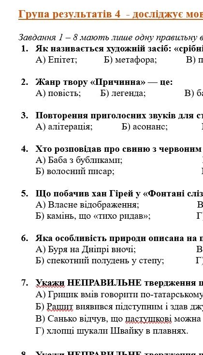 Комплексна підсумкова робота з української літератури для 8 класу НУШ “Українці та кримські татари. Романтизм в українській літературі” ГР 1, ГР 2, ГР 3, ГР 4. МНП Яценко, підручник Яценко