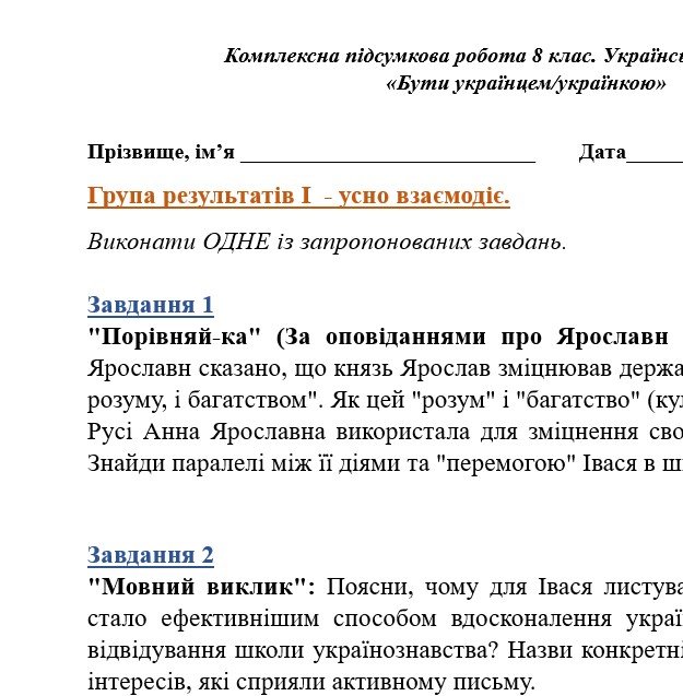 Комплексна ПР. 8 клас. Українська література. “Бути українцем/українкою”.”(МНП Заболотного) За чотирма ГР!!