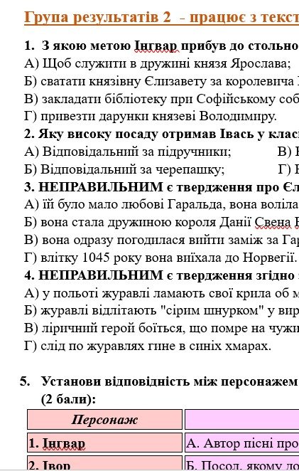 - ГР 2 – завдання за прочитаними творами: тестові завдання, завдання на відповідність, завдання правда чи хиба;