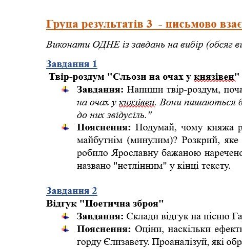 - ГР 3 – ТРИ креативних творчих завдання на вибір учня/учениці (написання різних творчих робіт на тематику прочитаних творів (з поясненням));