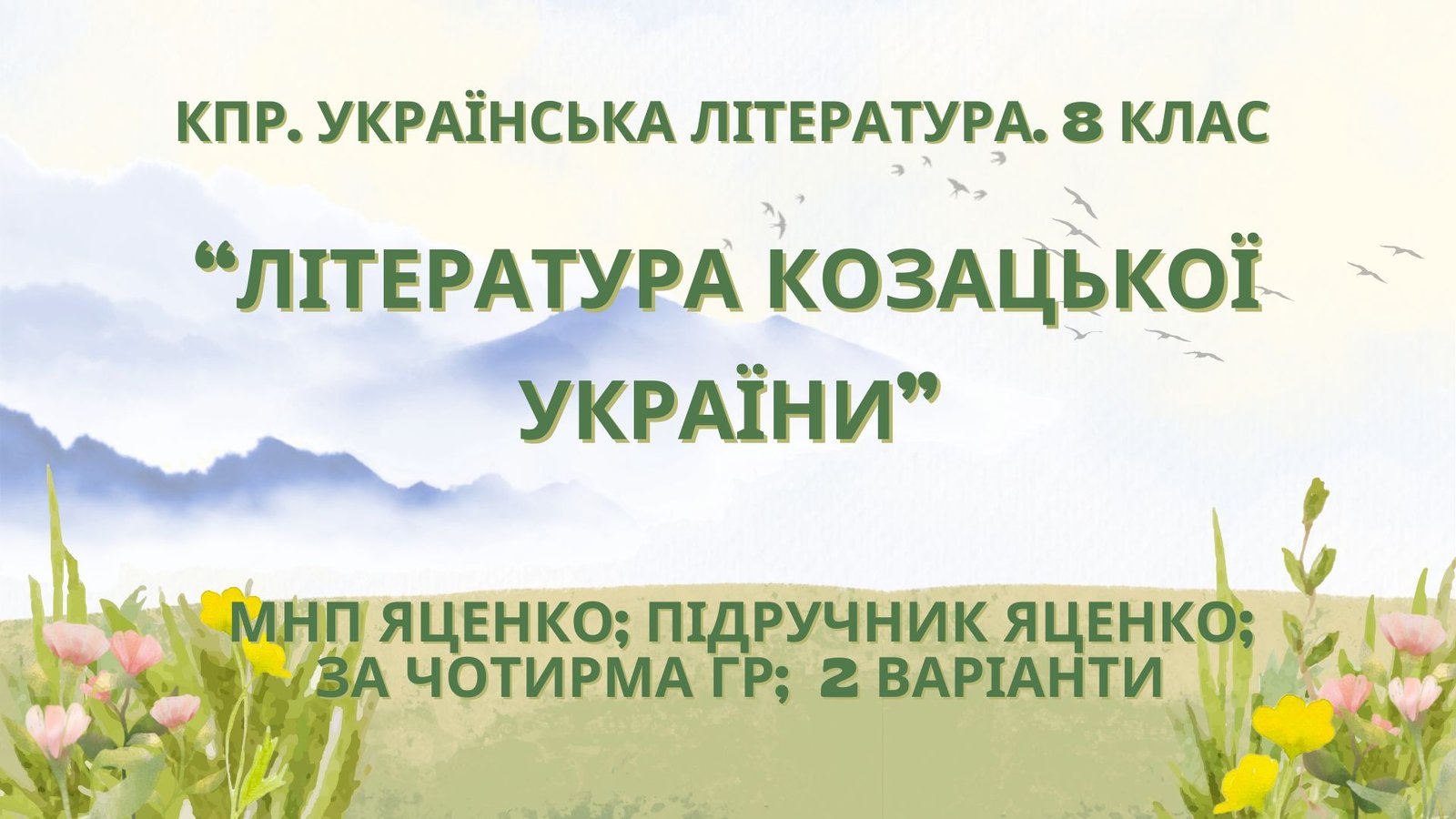 Комплексна ПР. 8 клас. Українська література. “Література козацької України”(МНП Яценко) За чотирма ГР!! Підручник Яценко 2 варіанти