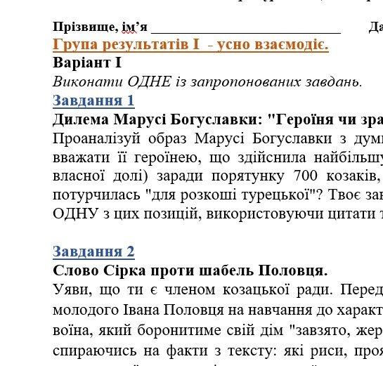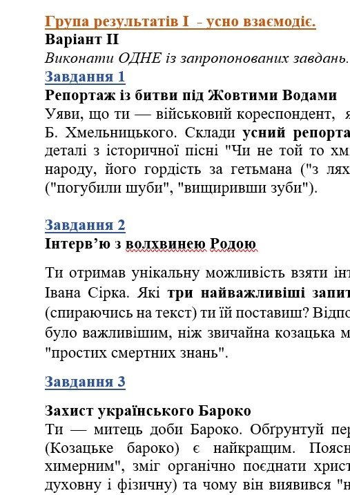 - ГР 3 – ТРИ завдання на вибір учня/учениці (або вчителя/ьки) (написання креативних творчих робіт за тематикою розділу) – 2 варіанти;