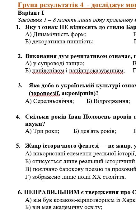 - ГР 4 – тестові завдання, завдання на встановлення відповідностей, завдання з відкритою відповіддю (ТРИ на вибір) – 2 варіанти.