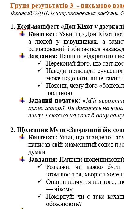 - ГР 3 – ТРИ завдання на вибір учня/учениці (або вчителя/ьки) (написання креативних творчих робіт за тематикою розділу);