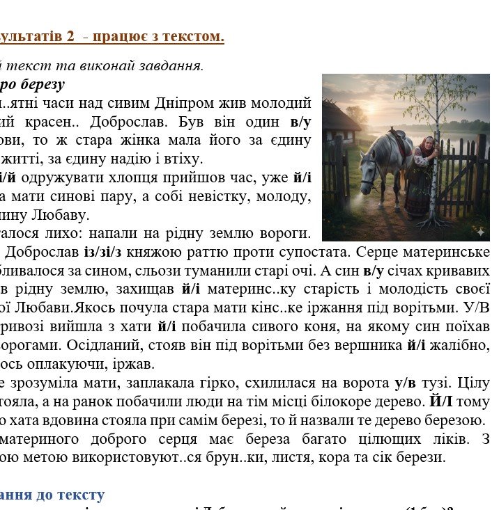 - ГР 2 – текст (легенда) та завдання до нього (на розуміння тексту та з вивчених мовних тем);