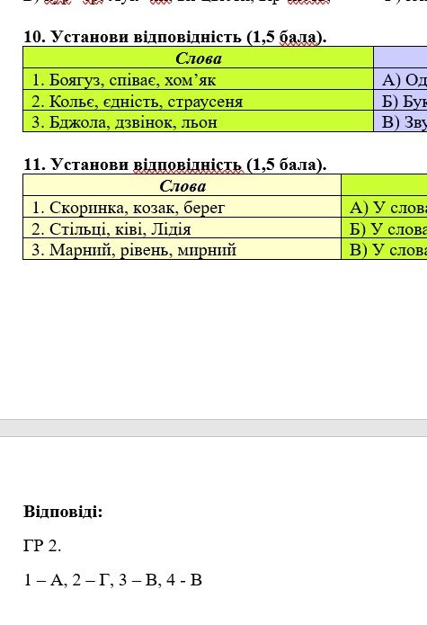 - ГР 4 – тестові завдання, завдання на встановлення відповідностей.