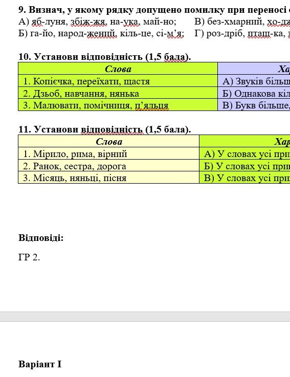 - ГР 4 – тестові завдання, завдання на встановлення відповідностей – 2 варіанти.