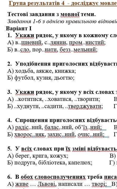 - ГР 4 – тестові завдання, завдання на встановлення відповідностей, фонетичний розбір слова – 2 варіанти.