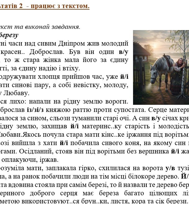 - ГР 2 – тексти (легенди) та завдання до них (на розуміння текстів та з вивчених мовних тем);