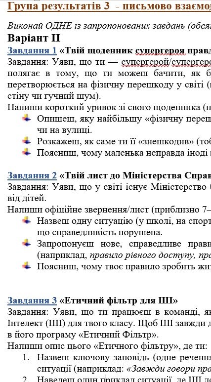 - ГР 3 – по три завдання в кожному варіанті на вибір учителя або учня – написання цікавих та креативних творчих робіт);