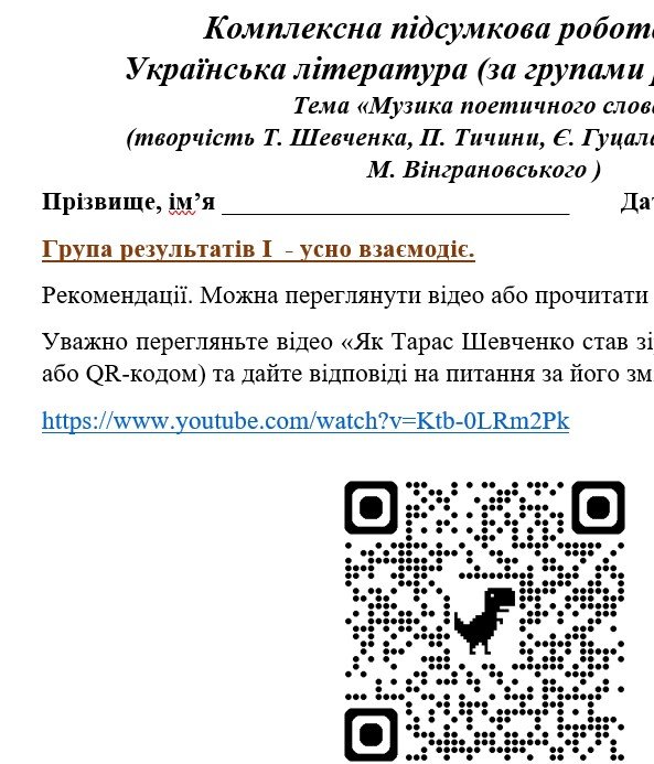 ГР 1 – аудіювання відеоматеріалу за посиланням або QR-кодом АБО за текстом(6 тестових завдань – 2 варіанти);