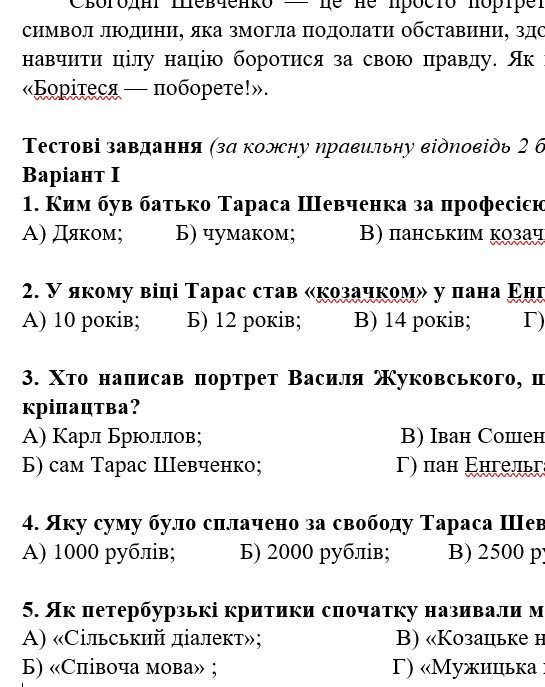 ГР 2 – завдання за змістом прочитаних творів (тестові завдання, завдання на встановлення відповідностей, завдання “Правда чи хиба”) – 2 варіанти;