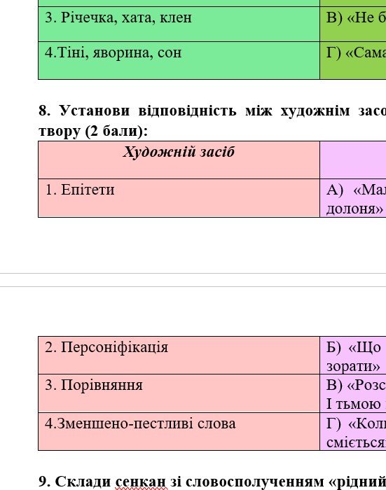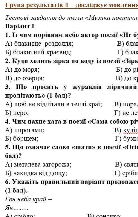 ГР 4 – тестові завдання, завдання на встановлення відповідностей, творче завдання (сенкан) – 2 варіанти.