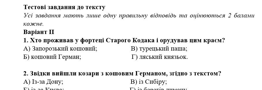 Комплексна підсумкова робота. 7 клас. Українська література. “Народна творчість” за ч...