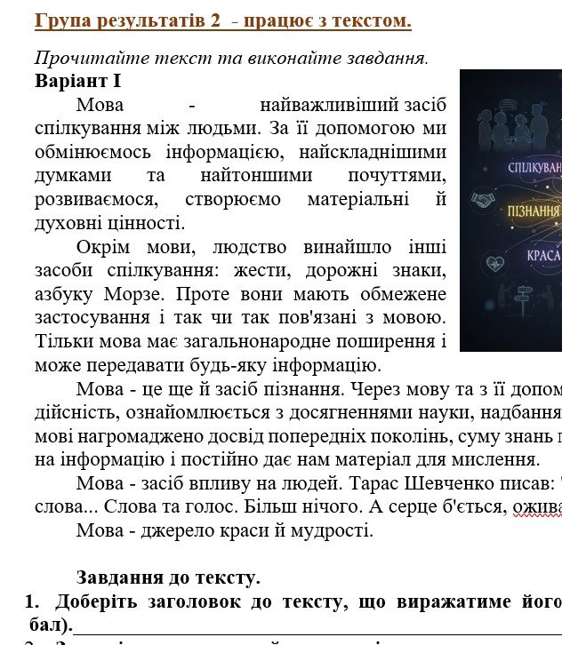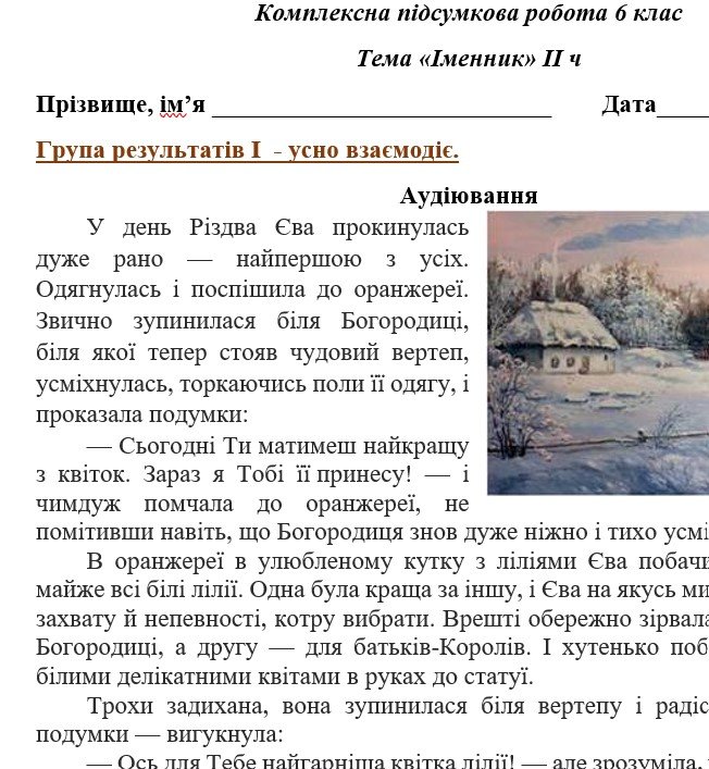 ГР 1 – аудіювання тексту художнього стилю (уривок із твору Богдани Матіяш “Єва і білосніжна квітка лілії”) – 2 варіанти.