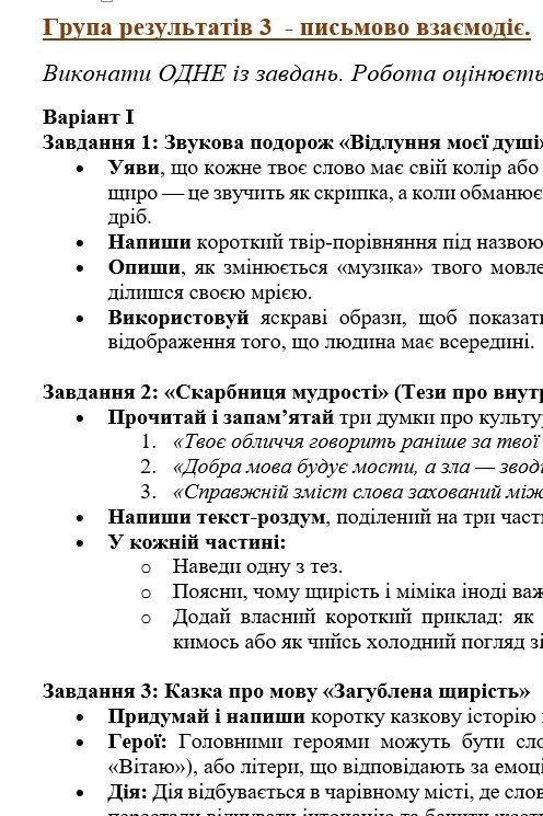 ГР 3 – чотири завдання на вибір (написання творчих робіт різних жанрів на цікаву тематику) – 2 варіанти;.