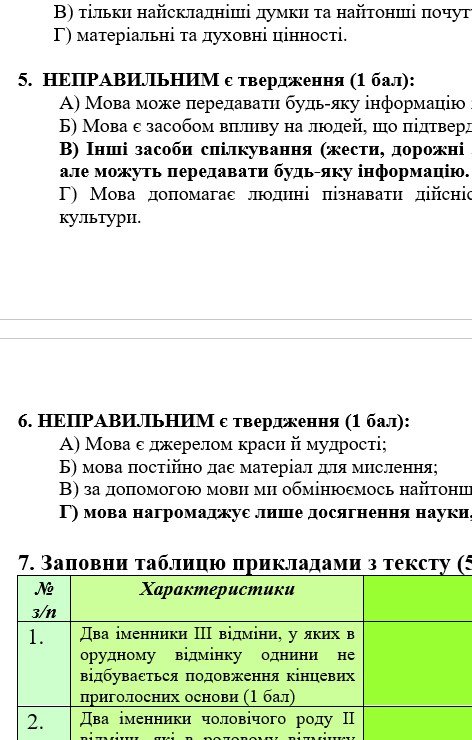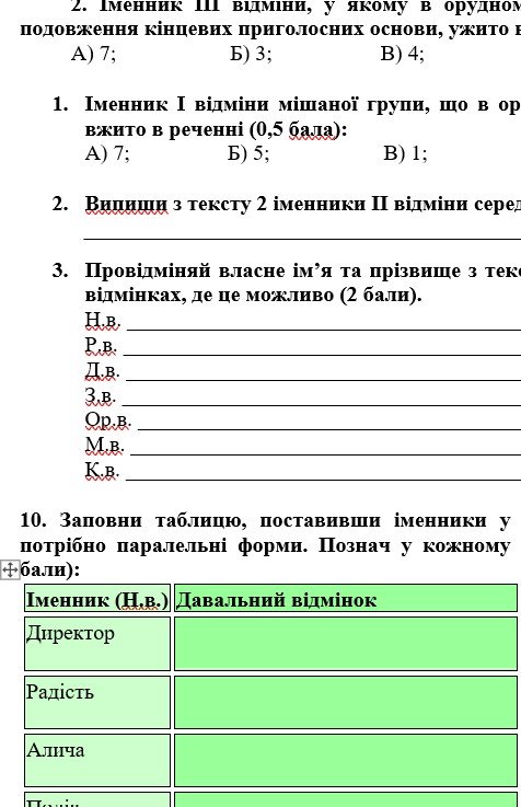 ГР 2 – робота з текстом (тестові завдання для перевірки розуміння тексту, завдання, пов’язані з темою «Іменник (2 частина)»).