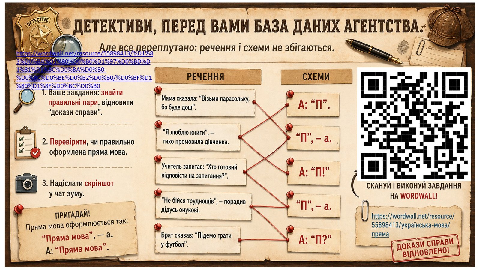 Це не просто пояснення матеріалу — це повноцінна сюжетна лінія, де учні стають детективами мовного агентства та розслідують “справу зниклих слів”. Такий формат забезпечує максимальну залученість і мотивацію до навчання.