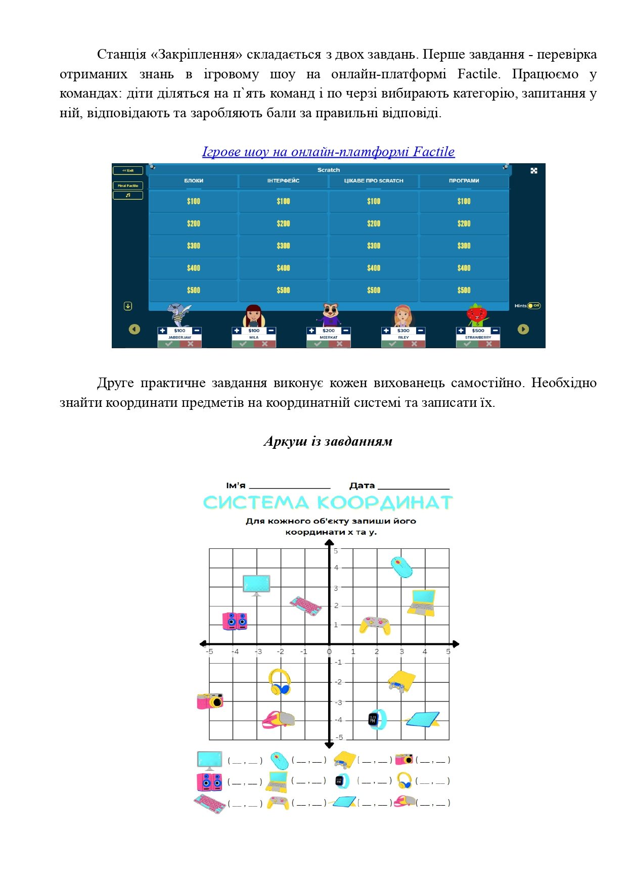 Практичне конструювання: Створення лінійних алгоритмів для переміщення героїв за заданими координатами та малювання фігур за точками.