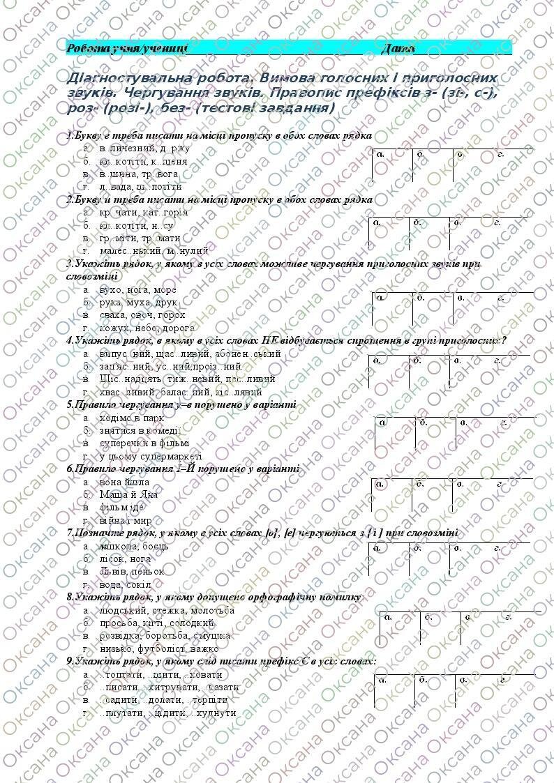 Щоб купити «Контрольна робота. Вимова голосних і приголосних звуків. Чергування звуків. Правопис префіксів з- (зі-, с-), роз- (розі-), без- (тес», потрібно додати матеріал до кошика та оплатити замовлення.
