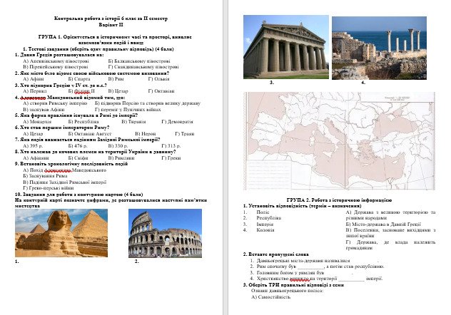 Контрольна робота з історії 6 клас Щупак за ІІ семестр