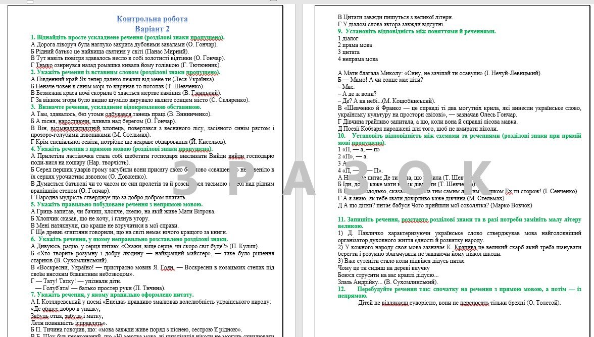 Матеріали «Контрольна робота з теми «Синтаксис. Пунктуація. Пряма й непряма мова».» будуть надіслані в електронному вигляді на вашу поштову скриньку одразу після оплати.