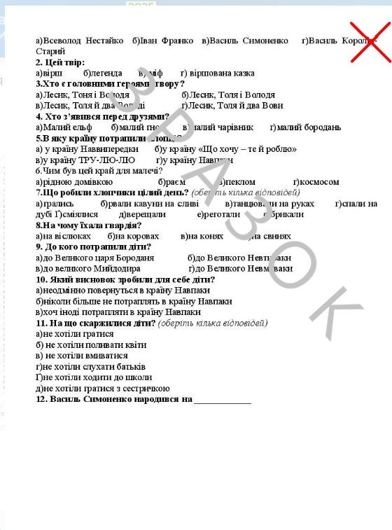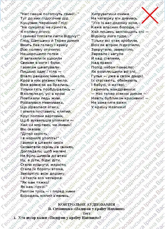 - Для аудіювання обрала віршовану казку “Подорож у країну Навпаки” В. Симоненка. Тест містить 12 питань.