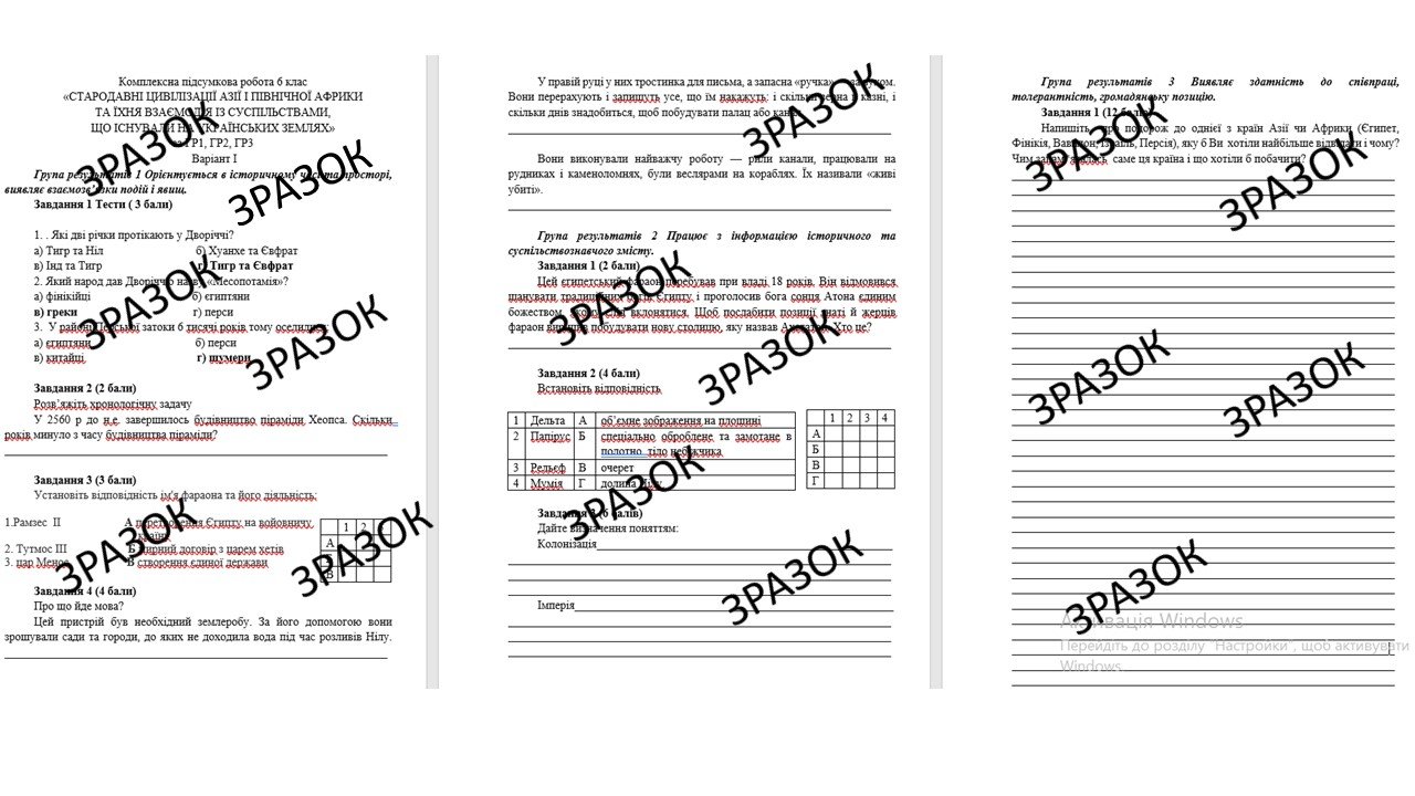 Діагностувальна робота. Розділ №2. Стародавні цивілізації Азії і Північної Африки та їхня взаємодія