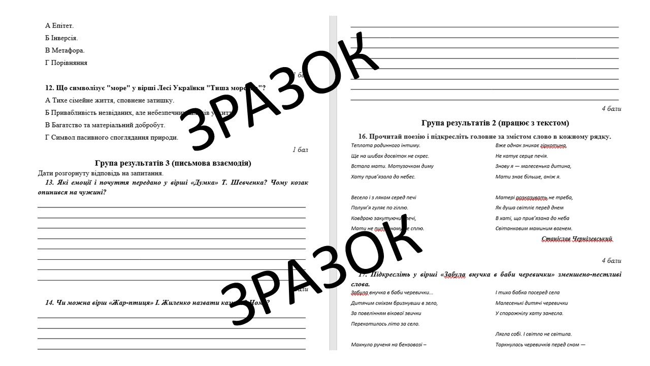 Комплексна підсумкова робота з української літератури за чотирма групами результатів з теми: «Поетичний дивосвіт. (“Чуття гармонії у слові”)»