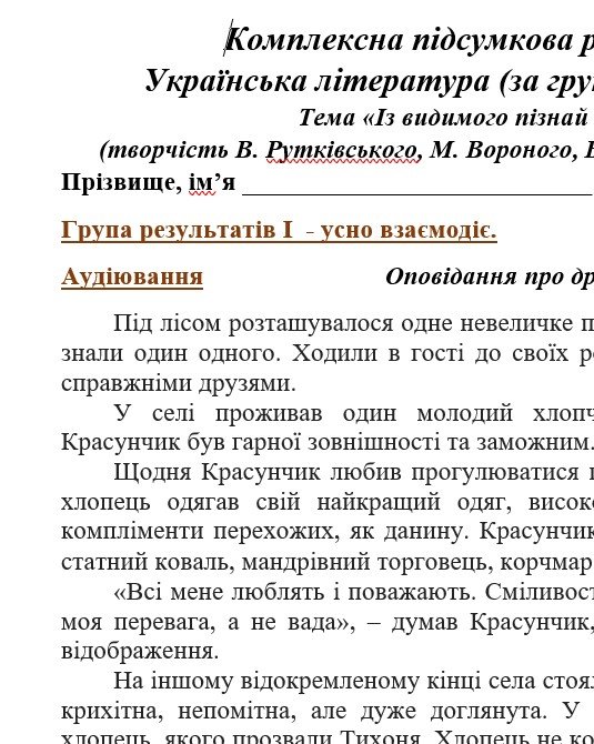 - ГР 1 – аудіювання тексту художнього стилю (Оповідання про дружбу) – 2 варіанти;