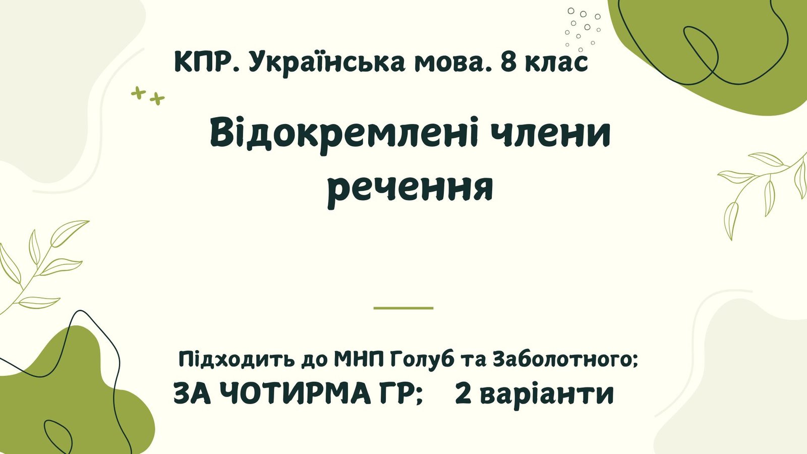 КПР. Українська мова. 8 клас. “Відокремлені члени речення” за ЧОТИРМА ГР; 2 варіанти (підходить до МНП Голуб та Заболотного ПЕРЕВІРЕНО!!!!!))